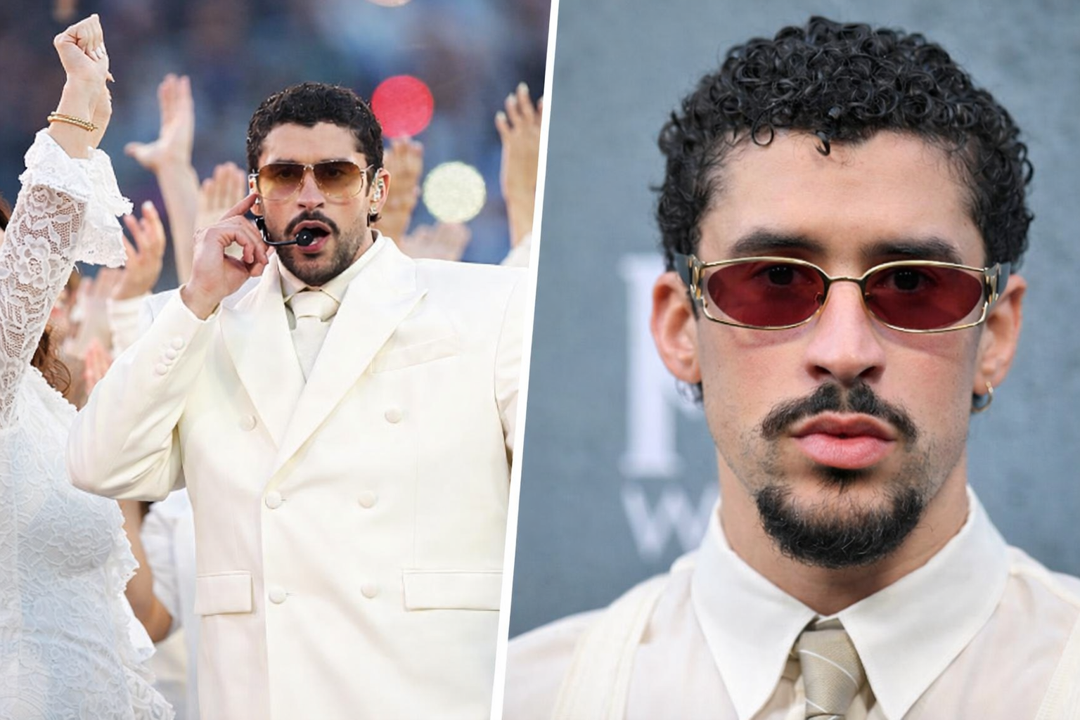 דונלד טראמפ יושב מול הטלוויזיה, רואה מופע מחצית הסופרבול בספרדית, עם קצב לטיני, צבעים, רקדנים,